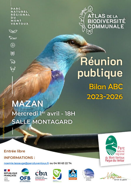 Pour marquer la fin de ce projet portée par le Parc naturel régional du Mont-Ventoux, des réunions publiques de bilan sont organisées dans les communes du territoire. Ces rencontres seront l’occasion de partager les résultats des inventaires réalisés dans chacune des 8 communes, de découvrir les espèces patrimoniales observées, et de présenter les enjeux pour la biodiversité locale qui ont été identifiés. Nous évoquerons également quelques pistes et préconisations pour la suite, afin de continuer à mieux prendre en compte la biodiversité dans les projets et les pratiques du territoire.